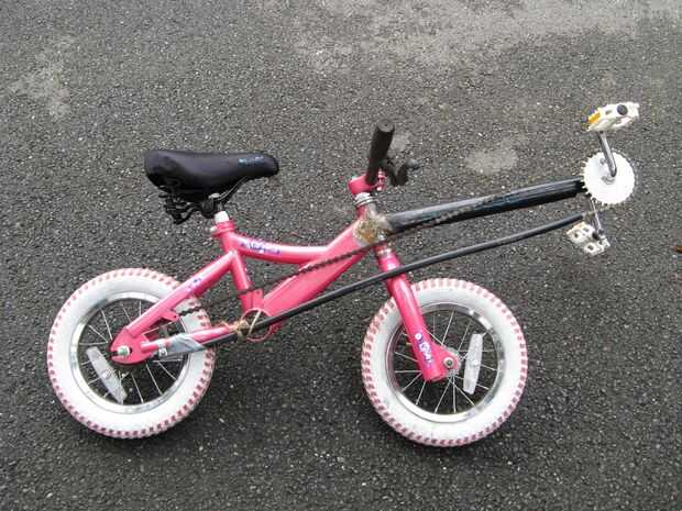 Híbrido de la princesa littlest rosa con la gran mala montaña bici abajo-tubo soldado con autógena a su tubo de dirección como un narval con ruedas color rosa poco. "Sí, me hace quiere conseguir todos tallados en vosotros."
