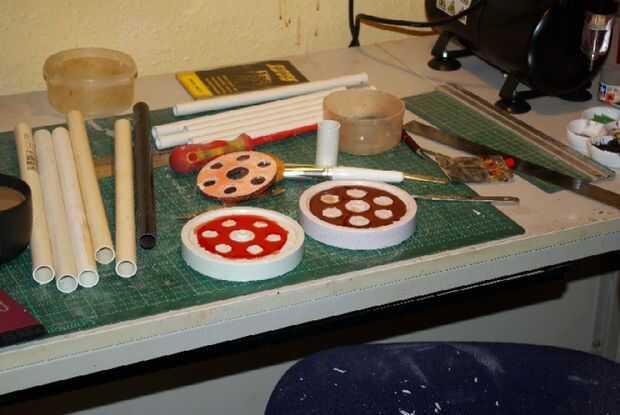 Estos dos espaciadores forman maestros para el resto del molde. Necesité tres de los más pequeños y tres de los tamaños más grandes para llenar los barriles.