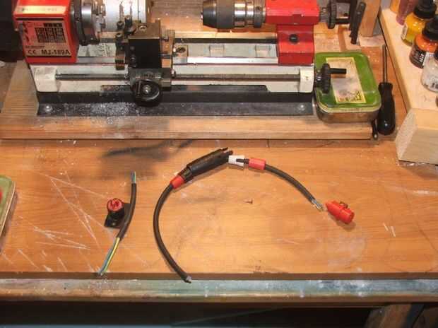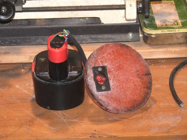 Entonces colar dos placas de extremo, uno en el centro para permitir el cableado al pasar a través de la perforación. Conductores fueron soldados a la batería, luego pegados en cinta eléctrica para intentar evitar humedad de llegar a ellos. la batería fue pegada con hot melt y montar las tapas. Estos tapones tendrá adiciones cosméticas en una etapa posterior. Usé algunos viejos zócalos de panel y tapones para el final del cableado y añadió una placa de extremo con un conector de chasis que encontré en la caja de repuestos. Esto permitirá que la batería conectar el gatillo o el cargador cambiando simplemente el enchufe sobre.