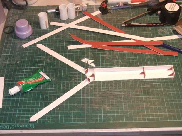 Usé el mismo proceso para crear el marco de la 'Y' mina corriendo derecho a los bordes del delantera del hierro de ángulo, otra vez una desviación de la original. Una vez tuve la estructura principal de cartón creada hice un montaje de prueba. Una vez montado, esto se llevará a cabo con pequeños tornillos en la parte delantera.