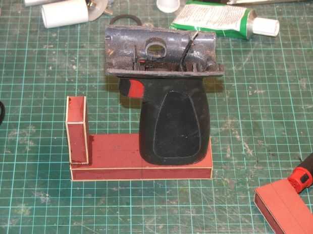 Comienzo por esbozar cómo quería que encajan entre sí. De la pistola original el marco de los pernos a la parte posterior del cuerpo, pero no creo que mina sería lo suficientemente fuerte en esa configuración. En su lugar he decidido que se construyo el marco de la 'Y' como una parte de carga no, luego realizar un yugo que pueda ser pegado y atornillado a la parte posterior superior del cuerpo. El marco de la 'Y' luego atornillarse en el yugo de encima. Haría que la 'L' en forma de soporte para el mango trasero de dos secciones rectangulares. Estos sería pegados y atornillados, luego atornillados y pegados hasta el final de las Asambleas de 'Y' marco y yugo. Pensé que esto sería lo suficientemente fuerte para apoyar el arma.