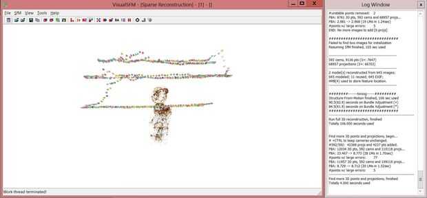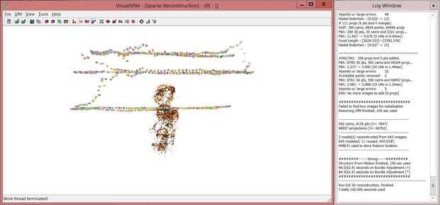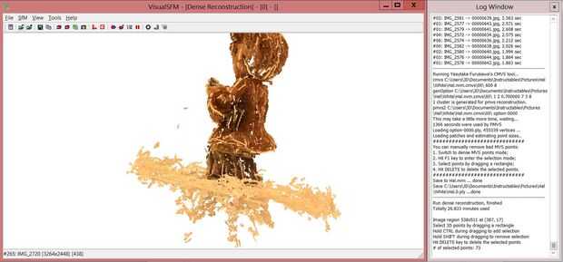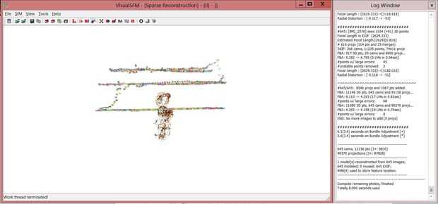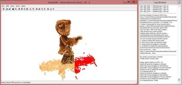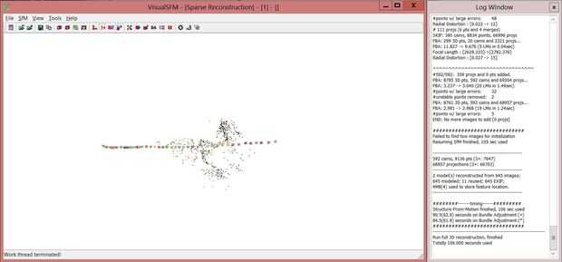 Durante este proceso que se puede ejecutar en el programa pensar que utiliza dos cámaras diferentes y creará dos nubes de puntos diferentes (esperemos que sólo tienes uno). Con la ventana principal de Visual SFM seleccionada, presione el botón "Up" en el teclado para cambiar entre las nubes de puntos. Mirar a través de sin embargo muchos tienen y encontrar el que es más completo y luego borrar las demás. Eliminar un modelo o nube de puntos se realiza: "MFS -> Delete Selected modelo" que es el segundo de la parte inferior de la lista.