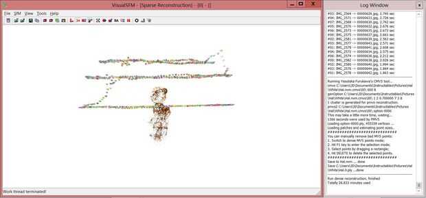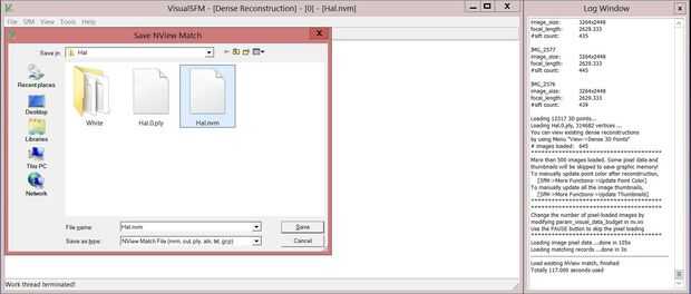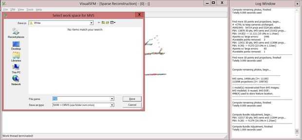El botón para esto es la quinta desde la derecha y cuatro letra coloreada diferente, CMVS. El botón se abra una ventana y pregunte donde desea guardar el siguiente conjunto de archivos de datos. Asegúrese de que le ha dirigido a la segunda carpeta y luego darle cualquier nombre que veas apropiado. Golpe guardar y comenzará a hacer su cosa. Este paso lleva una buena cantidad de tiempo para completar así agarrar un libro y un poco de té y disfrutar de la calidez de la computadora se puso de. Esto funciona a través de todos los puntos otra vez y encontrar más puntos para crear una nube de puntos más elaborado.