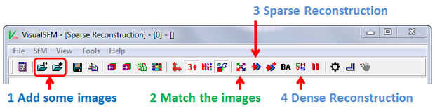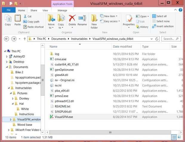 Puede descargar VisualSFM de de ChangChang Wu sitio web. El programa se ejecuta en Windows (32/64 bit), Mac y Linux. Cada uno tiene instrucciones específicas de instalación. Siguiendo las instrucciones es muy recomendable. Personalmente uso Windows y encontró que el programa de descargas como un archivo zip con todo incluido. Extraer todo en una carpeta propia. Una vez extraído se debe poner en la carpeta documentos.