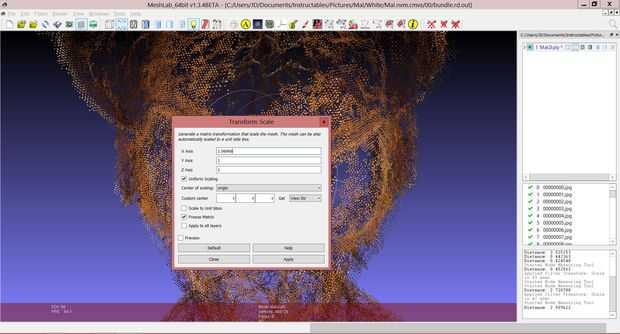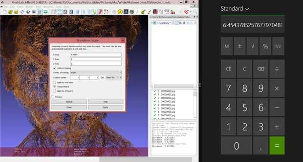 La nube de puntos tiene un tamaño a él pero que el tamaño no es una relación 1:1. Para conseguirlo se debe medir una parte específica en el modelo. Ahora se puede medir en el programa usando la "herramienta de medición", que parece un amarillo enrollado tela cinta métrica cerca de la mitad de la barra de herramientas. Una vez que haga clic el botón que usted tendrá que encontrar, si es posible, los puntos exactos de la misma en el modelo originalmente medidos (zoom o hacia fuera, puede ser necesario). El programa creará una línea y un número, en su segundo clic. Ahora tiene que esta medida y su original para ser la misma. Para hacer esto usted conseguirá una relación de lo diferente que son. Dividir su medida original por la medida en el programa para obtener una relación que necesitará aumentar su modelo (originalmente mide en pulgadas pero tuvo que convertir a milímetros para obtener una proporción adecuada). Haga clic en "filtros -> normales, curvaturas y orientación-transformación: escala". En la ventana que aparece, necesita el cociente encontrado en cualquiera de las tres mejores cajas (X, Y o Z) de entrada. Si el cociente es mayor que 100, necesitará mover el control deslizante hacia la derecha, el cociente a la derecha del número en el cuadro de entrada y elimine el "100". Aplicar de golpe y el modelo se mueven o desaparecen. Esto es debido a la orientación que estaba viendo el modelo ya no es aplicable para el nuevo tamaño del modelo. Alejar y mover el modelo a una orientación donde se puede ver. Ahora vuelva a medir y repetir el proceso hasta que estés satisfecho con el tamaño. Si usted quiere hacer el modelo más grande que el original entonces puede multiplicar su relación por esa cantidad (es decir, 1/8, 1/2, x 2).