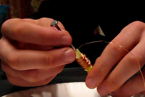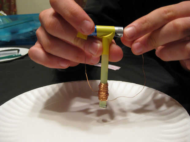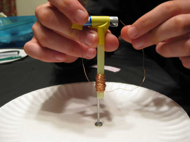 Tocar brevemente el extremo suelto al otro terminal de la batería. El clavo debe ser levantado en la paja. Al desconectar la batería, debe caer hacia abajo otra vez.