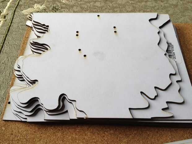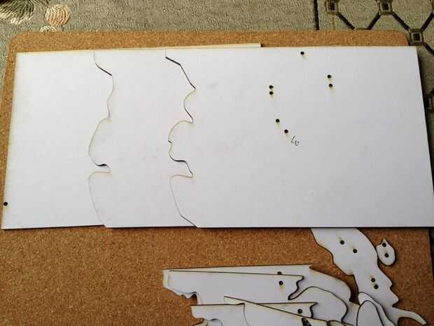 9. Repita hasta que hecho: poner en otra pieza de lámina perimétrica. Elaboración de las anteriores líneas de contorno, seleccionar el siguiente conjunto de líneas. Si las líneas cruzan su caja de contorno, seleccione demasiado. Asegúrese de seleccionar todos los agujeros de registro que se encuentran dentro del contorno que usted está cortando. En la parte posterior de cada pieza, escriba el número inmediatamente superior; Si usted no es fácil confundirse más tarde y tener el modelo contour convertir en un rompecabezas 3d!