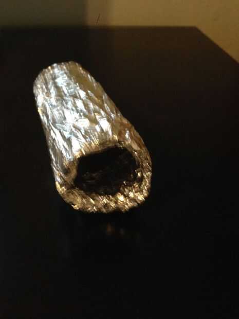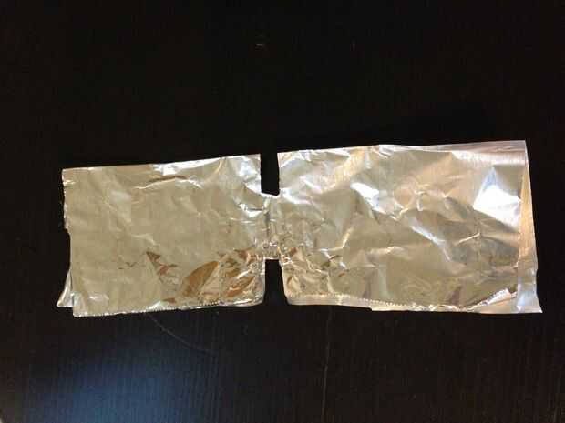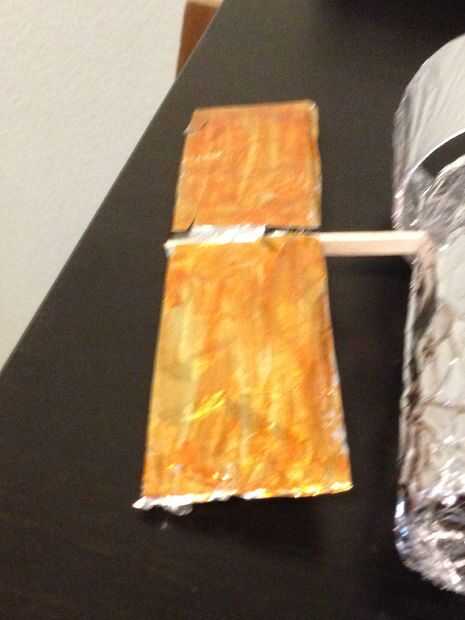 Para crear el cuerpo del modelo necesitamos una lámina de aluminio y rollo de toalla de papel. En primer lugar, cortar el rollo de toalla de papel para una longitud de 4 1/2 pulgadas. A continuación, tendrá que cubrir con papel de aluminio. Doble extra sobre los lados. Para hacer los paneles solares del telescopio necesita una 2 piezas de plástico transparente, cada 7 por 1 3/4 pulgadas largo. Ahora tenemos que cubrir en el papel. Tome un pedazo es de 7 3/4 por 5 pulgadas. Doblar la hoja por la mitad y corte un guión a cada lado. Cuando usted cubre el plástico, si tiene hoja extra colgando sobre los lados, dóblela sobre los lados para mantener el papel de aluminio en. Por último, colorearlo con el marcador del efecto extra.