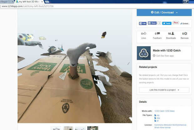 La aplicación "123D" le permite tomar fotos (generalmente cerca de 28 a 70 fotos) alrededor de los objetos (los pies). Luego, a enviar estas fotos a un servidor de la nube de Autodesk y devolver como resultado un objeto (archivo) de malla 3D .