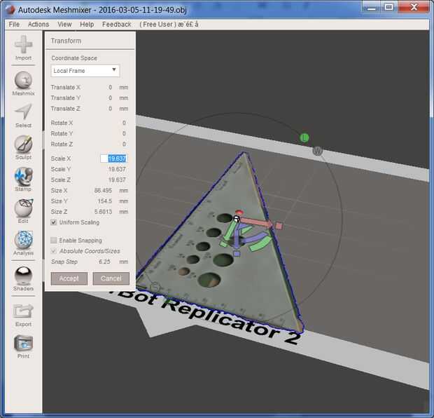 Para encontrar el factor de escala es necesario un objeto de referencia. Porque los pies de objetos que importen Meshmixer es no relación 1:1 en comparación con mis pies reales, y también porque no puedo conseguir una medida exacta de los pies debido a su forma dinámica y compleja, tengo que colocar un objeto de referencia (regla) en las fotos.