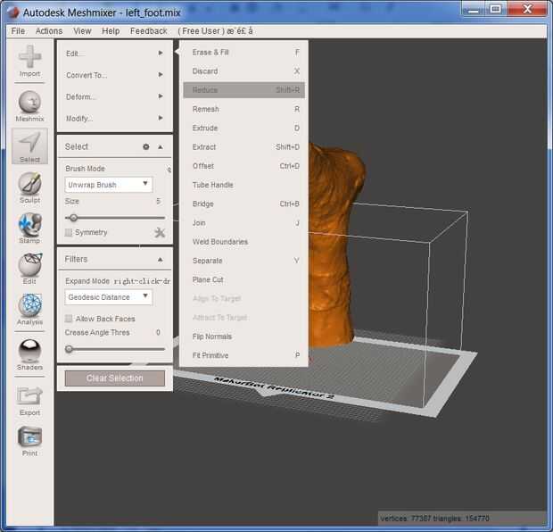 Paso 6: Escala y crear un modelo imprimible de mi pie izquierdo: