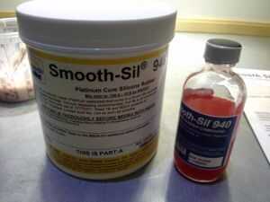 Estoy utilizando Smooth-Sil 940 de Smooth-On que está disponible en uno de mis lugares favoritos, materiales avanzados de Reynold. Déjame ser el primero en decirte... este pegote es una mierda para trabajar con si eres nuevo en lo de silicona todo. Es más gruesa que los mocos y no verter fácilmente en todos. Tienes que mezclar por volumen en una proporción de 100:10 que significa que también tuve que comprar una balanza.