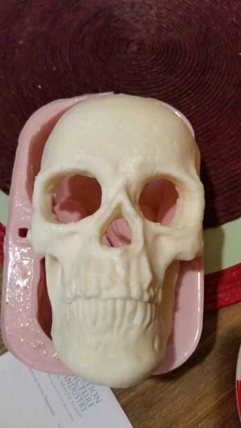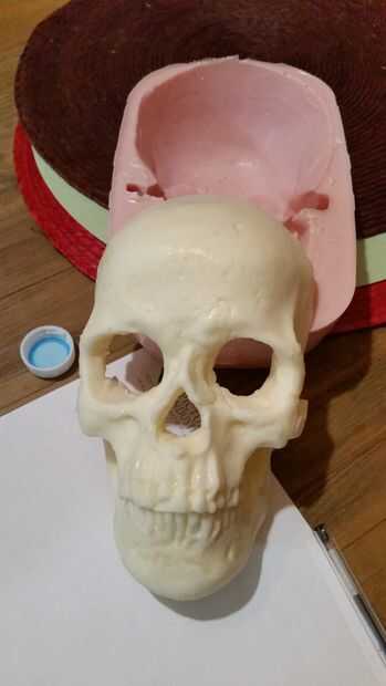 Una vez había quitado mi cráneo del molde, es tiempo para un baño rápido con agua y jabón para asegurar que mi moho estaba libre de cualquier residuo que pudo haber sido en el cráneo antes del moldeado.