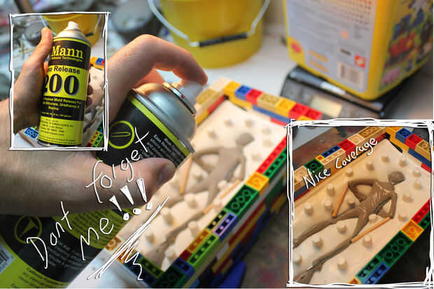 En mis días más jóvenes (último mes) se me olvidó aplicar al desmoldante que incapsulated la escultura dentro del molde sin posibilidades de soltarlo... Fue un día triste y costoso! Había perdido aproximadamente $75,00 en material del molde y costosas horas en esculpir la figura sí mismo! Aprender de mi error y no lo hace! Dar su molde una agradable capa de desmoldante desde todos los ángulos. No se arrepentirá ;)