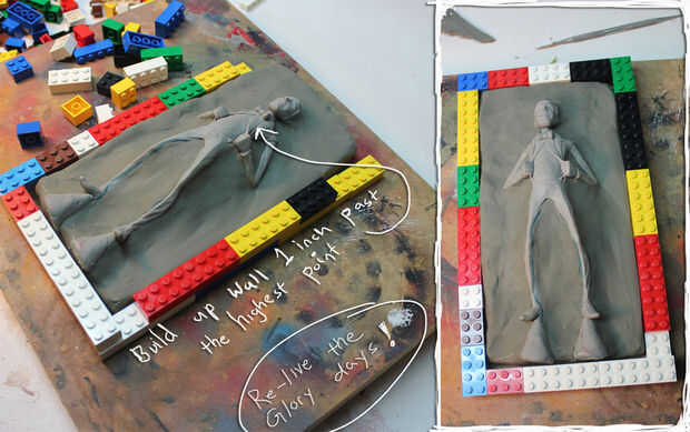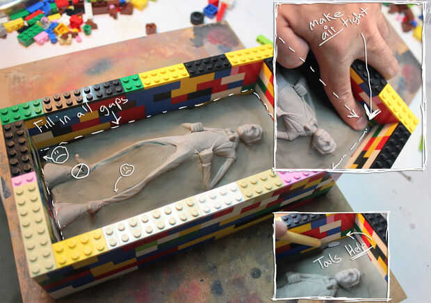 Queremos que la escultura ser completamente encapsulado en el caucho por lo que necesitamos para construir la pared más allá de la escultura de una buena cantidad. Asegurar también los Legos se empujan juntos agradable y apretado.
