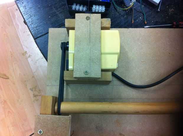 poner la banda de impulsión del motor, si hiciste todo bien debería ser bastante apretado, tiene que ser de otra manera que no impulsará el rodillo.