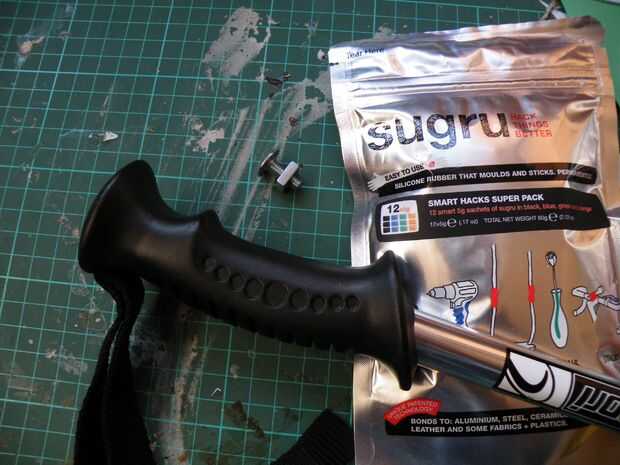 Usé una aluminio barata poca Polo (que ya tenía), un perno de cuarto de pulgada de diámetro, a unos centímetros de paracord de 2mm y una bolsita de "Smart Hack" de 5g de negro Sugru.
