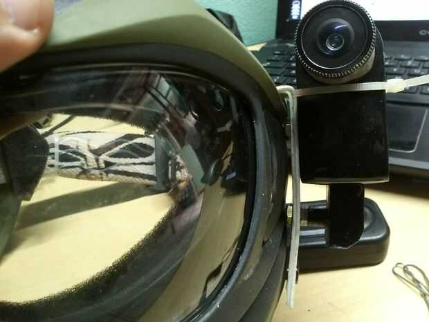 La realización de que un montaje de cámara máscara de Paintball es el primer soporte para enmascarar con elástico y la versión 2.0 puede utilizarse en cualquier modelo de máscara.