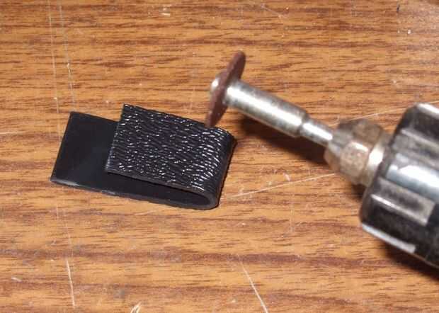 Luego usé una herramienta Dremel con un disco abrasivo de carburo para cortar la pestaña en un lado del clip – dejando lo suficiente para circundar el radio.