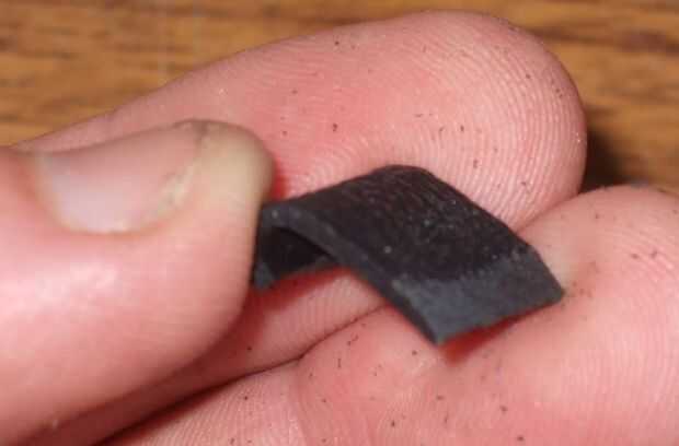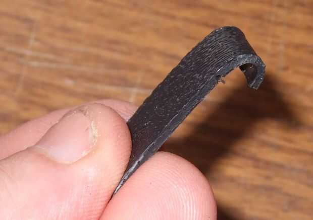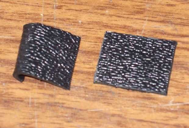 Entonces calienta la pequeña tira de plástico con una pistola de calor (textura hacia abajo) hasta que comenzó a rizar.