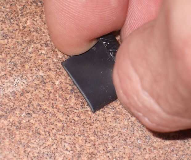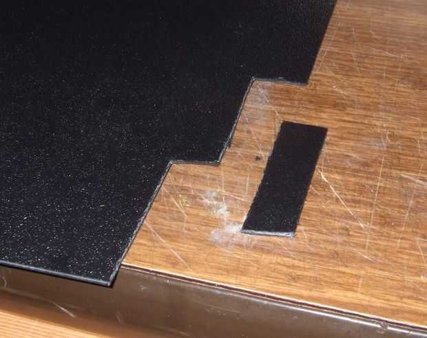 Por último, puede encaminar el cable de alimentación bien para que no quede colgando frente a la radio, controles de AC, etc.. Realmente no pude encontrar una buena manera de estándar para el cable que estaba feliz con así que hice algunos pequeños clips de un pedazo de plástico ABS. Me dio un pedazo de chatarra ABS plásticos toque que era negro, con textura en un lado, y. 065" de espesor. Corté una tira pequeña de la chatarra de plástico con un par de tijeras.