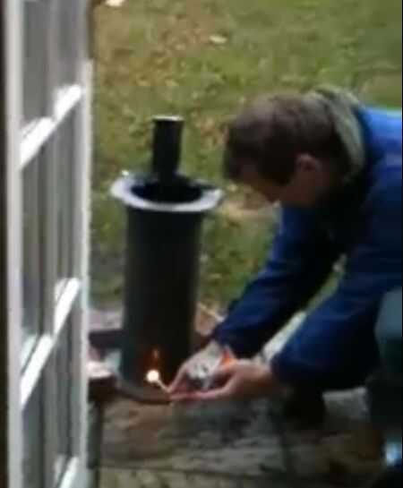 Primer el mortero con el combustible más ligero. Necesitarás entre 2,5 ml y 4ml, dependiendo del clima. Utilice la menor cantidad si es un día caluroso y más si es frío húmedo y congelación. Cabe señalar que diferentes combustibles más ligeros tienen diferente volatilidad y por lo tanto, le dará una explosión de tamaño diferentes con diferentes cantidades. Usted necesitará experimentar para golpear la cantidad óptima para su instalación. Por esta razón tenemos el tubo de llama. Puede gotear el combustible a través de la parte superior abierta o hacer lo que hice y use una jeringa para inyectar a través del agujero de la leña. Entonces rápidamente...
