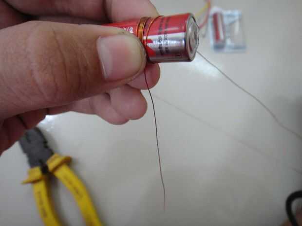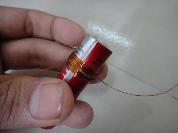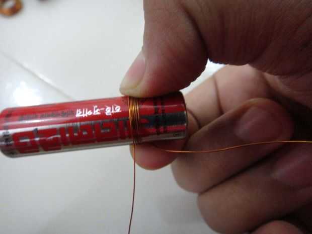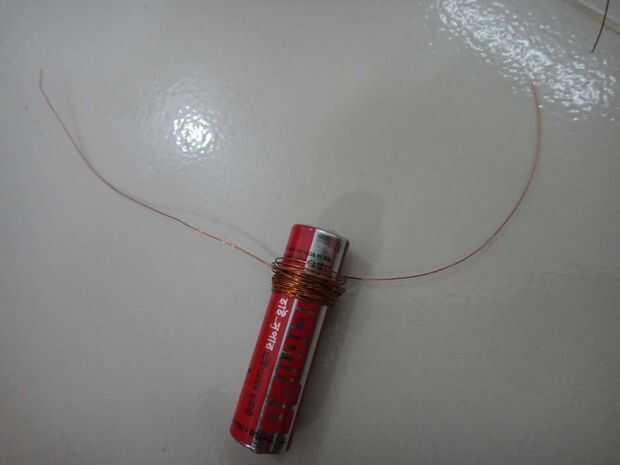 Ahora tome un rollo de alambre de cobre. Dejando algunos hilos extra en la coilling de inicio final el cable alrededor de la batería o cualquier cosa redonda. El cable de la bobina 20 veces y dejar algo de espacio extra al final otra vez. Ahora saque la bobina con cuidado.