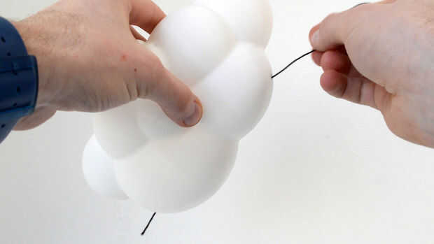 Empuje el hilo a través de la nube y las aves voladoras. Si tienes dificultades para hacerlo, intente con la nube hacia abajo o mojar la punta del hilo para enderezarlo. (seguir que puede hacerlo!)