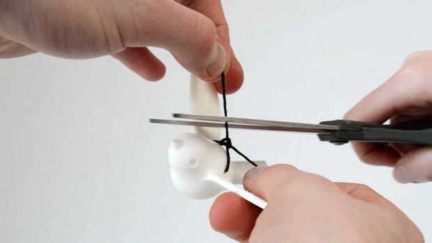 Hacer un nudo para las aves vuelos como se muestra en el video y cortar el exceso.