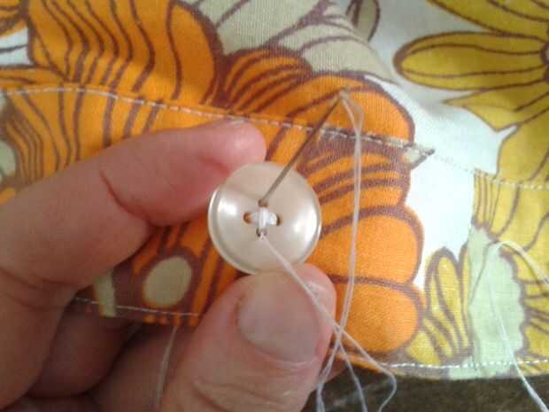 Mida el diámetro de los botones. coser los botones, me gusta doblar el hilo así que necesito menos tiempo para coserlas, hasta usted.