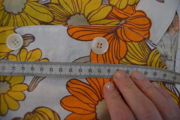 Mida desde la cintura al punto de donde estará el botón superior y división que medida por el número de botones que desee colocar para obtener cuánto de uno al otro los botones deben ser colocados. en mi caso que tuve que dividir una longitud de 27 cm por tres, así que mis botones son 9 cm de separación. Marque con alfileres donde van los botones