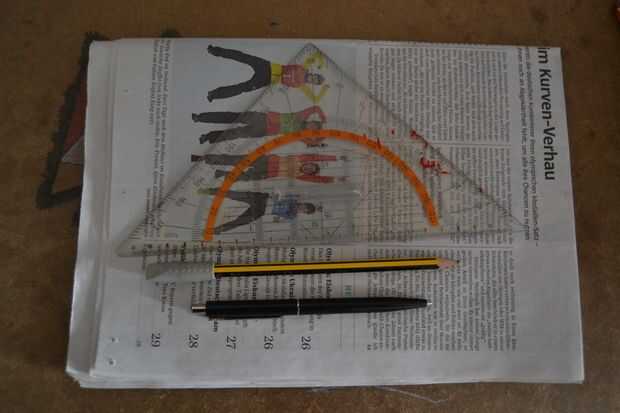 -gran papel (periódico viejo funciona bien y es gratis), plumas y triángulo