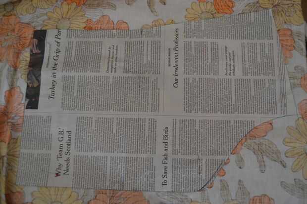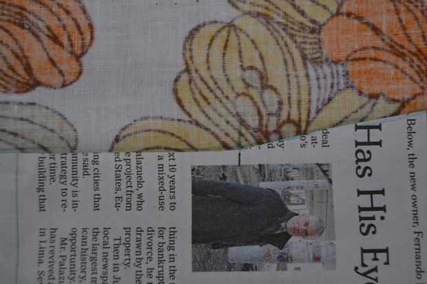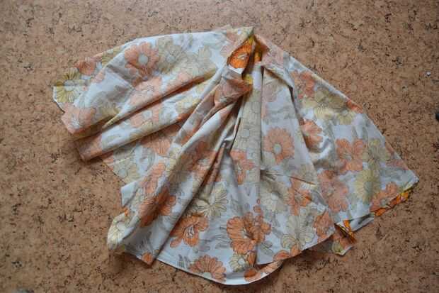 desde el frente necesita total 4 partes, dos lados izquierdos y dos derechos, hice ni tienen suficiente tejido original así que corte las dos partes interiores de los paramentos de un tejido blanco plano correspondiente, si su tela es grande suficiente puede cortar todas las 4 partes de él.