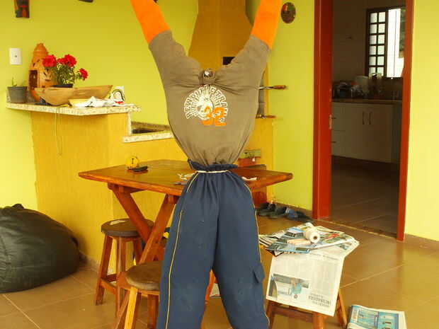 Al igual que el torso que vamos a cerrar la parte inferior de las piernas con la cuerda y empezar a empujar tanto periódico como pueda y cuando termine de cerrar la parte superior con la cuerda, otra vez esto le llevará un tiempo.
