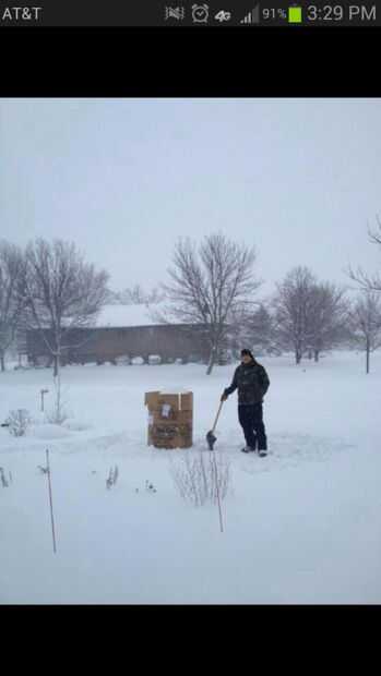 Básicamente, usé una gran caja de aparato (lavaplatos) rellenado con nieve (la nieve no era lo suficientemente pegajosa para rodar en un estilo tradicional) y que subió en la caja y pisotean por la nieve. Seguía el procoess de llenado y pisando fuerte hacia abajo, hasta que totalmente me había llenado para arriba de nieve compactada. Asegúrese de que usted compacto cerca de los bordes de lo contrario que podría terminar con un punto débil. Lo que utiliza un cúter para cortar la caja de arriba a abajo.