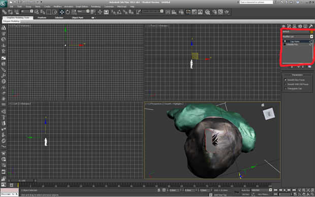 primero cambiar el modelo en una editable poly (botón derecho del ratón seleccione convertir a--> editable poly) probablemente este en el ultimo paso pero si no lo hizo
