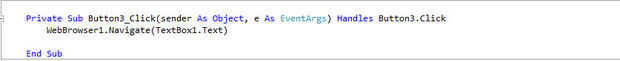 Para el botón ir, en el tipo de espacio en blanco en WebBrowser1.Navigate(TextBox1.Text) ahora cierre la ventana de comandos
