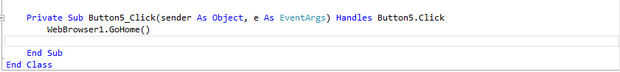 Para el botón Inicio, en el tipo de espacio en blanco en WebBrowser1.GoHome() ahora cierre la ventana de comandos