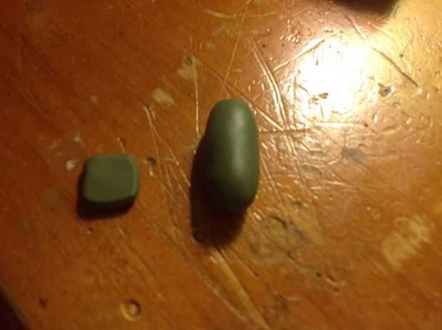 Mezclar el barro negro, verde y marrón para conseguir un color verde oliva oscuro. Tomar aproximadamente una cuarta parte de la arcilla recién mezclada y póngala a un lado. La parte restante del rodillo en forma de cilindro. La cuarta parte de su trozo de arcilla y en un espesor un poco más ancho que su cilindro cuadrado. Poner el cuadrado de arcilla en un extremo del cilindro y de mezcla para asegurar. Alisar la superficie de la arcilla hacia fuera.