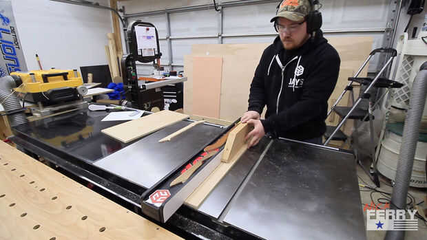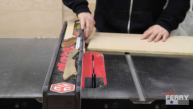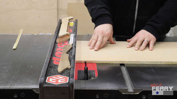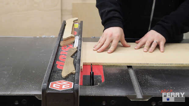 Conjunto de la sierra cerca a lo que la distancia te quiere tener su espacio y fijar la altura de la hoja a 1/2 el espesor del material. Con el espaciador entre el material y la guía, hacer su primer corte. Luego retire al espaciador y hacer un segundo corte. Ahora tienes un bonito e incluso 1/4" del surco. Deslice la guía sobre su distancia inicial (1.5" para mí) y repita el proceso.