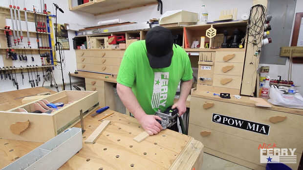 La bandeja de inserción fue nada especial. Cortan algunas piezas para caber dentro del cajón, algunos flotando rápido espigas para la carpintería de la esquina pegados y brad clavado abajo. Podría pegar y clavar los lados juntos así y que sostendría bien para este pequeño dispositivo.