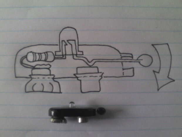 Nota: el cable negativo del LED tiene que ser a través del orificio en la parte superior del clip de la batería antes de cerrarlo