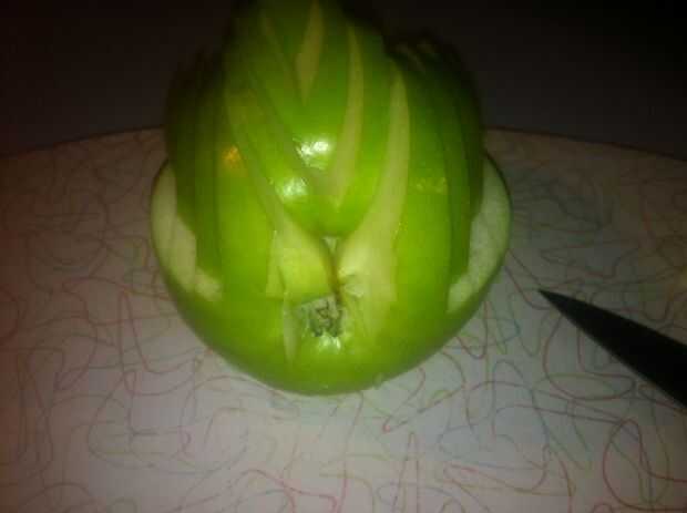 En este video muestro cómo hacer un árbol con una manzana. Puede utilizar el árbol de manzana como guarnición en un plato.Notas importantes: es importante lavar la manzana (con un jabón para frutas y verduras) y enjuague con agua fría. Puede secar la