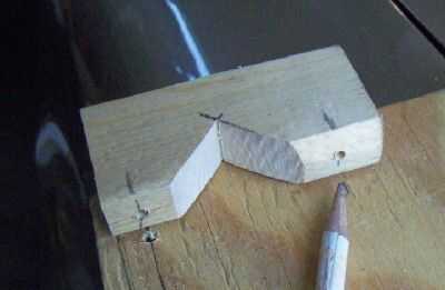 Marque y corte dos bloques de 1 x 2 tiras de la leña. Hace 2 1/2 a 3 pulgadas de largo. Cortar una "V" en el centro del lado largo. No hay necesidad de gran precisión. Se corregirá más adelante.