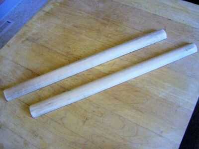 Si todo va bien, cuando termine tendrás dos igual o casi igual medio redondos aserrados de la barra del armario. Ambos tendrán una buena superficie plana, recta en la parte inferior. Lijar suave y la arena lo suficiente para quitar cualquier suciedad o manchas que pueden migrar al tejido de la prenda bajo una plancha de vapor caliente. Tienes un palo de costura extra para dar a alguien como regalo, también.