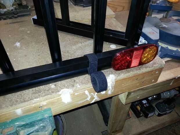 He utilizado un material de gancho/lazo que vino en un rollo (de Bunnings) para asegurar el panel Atamborado a la rampa sí mismo. Esto se puede cortar a cualquier longitud; sólo permiten un buen par de pulgadas de superposición.