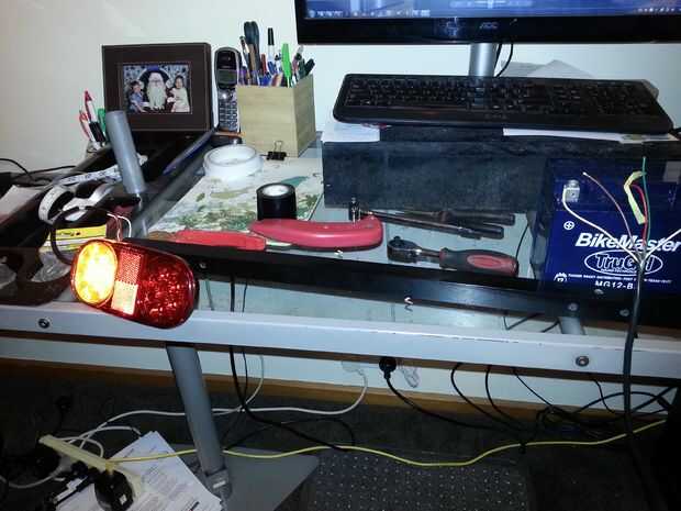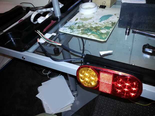 4. Unirse a los colores correctos; amarillo intermitente, rojo y marrón para las lámparas. El blanco es la tierra.