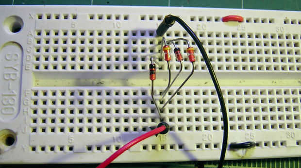 A continuación, coge tu maglight y teniendo todavía una lectura brillan una viga enfocada en los diodos y ver lo que dice su voltímetro. En mi configuración usando los diodos que tenía a la mano, pude obtener más de 100mV de cuatro diodos. Que no está nada mal, especialmente si usted está barajando que la tensión apagado a un condensador para o guardar para más adelante o para acumular una carga más grande para hacer algo más útil, como un LED de luz (sí, así es más útil) o ejecutar la disposición de basura.