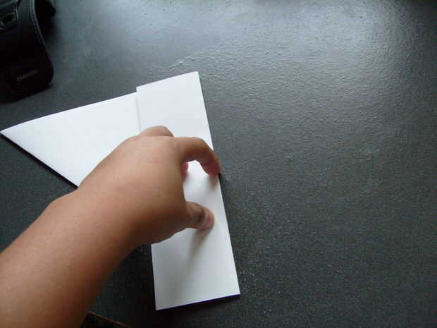 Doblar el rectángulo en el triángulo y el rectángulo entero hasta el triángulo como en la imagen 2 veces. Luego doblar en la parte posterior. Doblar 10 veces o más para hacer un fácil maduro.
