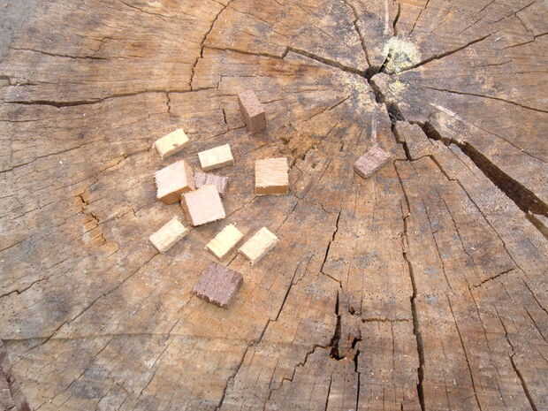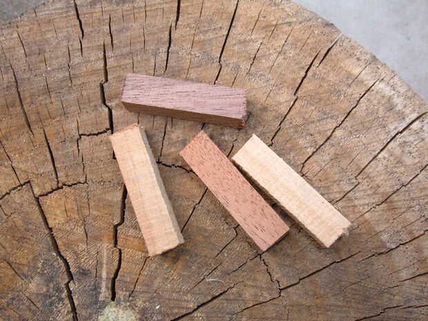 Primero, se corta la madera 1/4" ancho. Todo es ahora 1/4 "x 3/8" x 1 1/2". Fijar las dos secciones externas a un lado, tenemos que ir a trabajar en el centro, sección segmentada. Me gusta los segmentos a ser 1/8" y 1/4", cortar 3/16" y 5/16 de pulgada, aproximadamente.